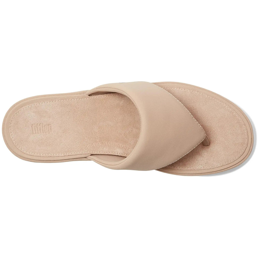 FitFlop Platfforms Wedge Toe Post Fabric Synthetic Women's Slip On Classic Beige Sandals