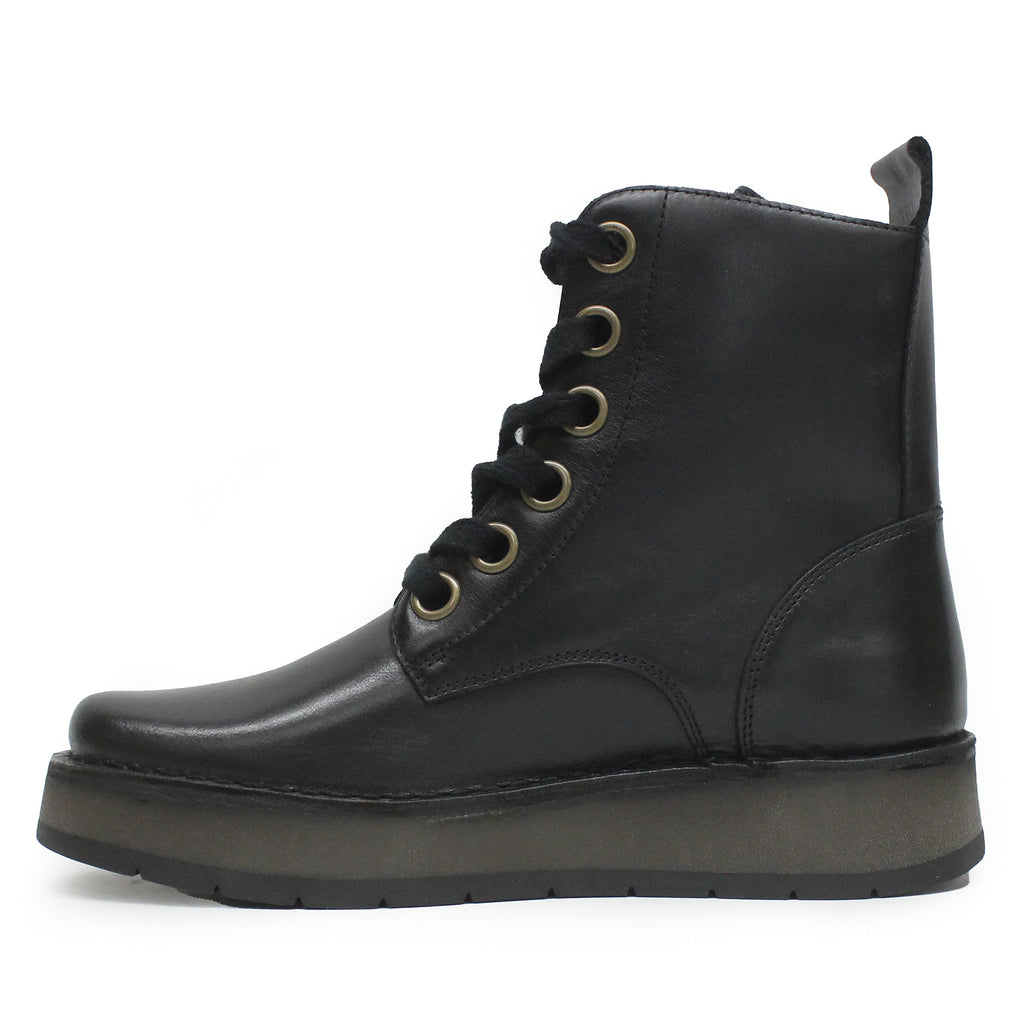 Fly London REIG201FLY Rug Leather Women's Black Ankle Boots